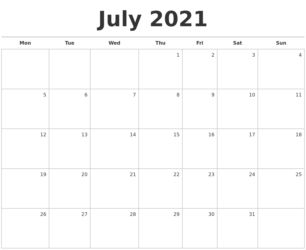 Free Printable July 2021 Calendar from www.betacalendars.com • you can use these templates as a scheduler, desktop calendar, holiday calendar, wall calendar, etc… Get monthly printable calendars of every month of this year from january to december to schedule your tasks. Download july 2021 calendar as html, excel xlsx, word docx, pdf or picture. Are you looking for a free printable calendar 2021? You can also change the month if you prefer. Geng xu day, jia wu month xin chou ( ox ) year. View the month calendar of july 2021 calendar including week numbers. Quickly print a blank yearly 2021 calendar for your fridge, desk, planner or wall using one of our pdfs or images.